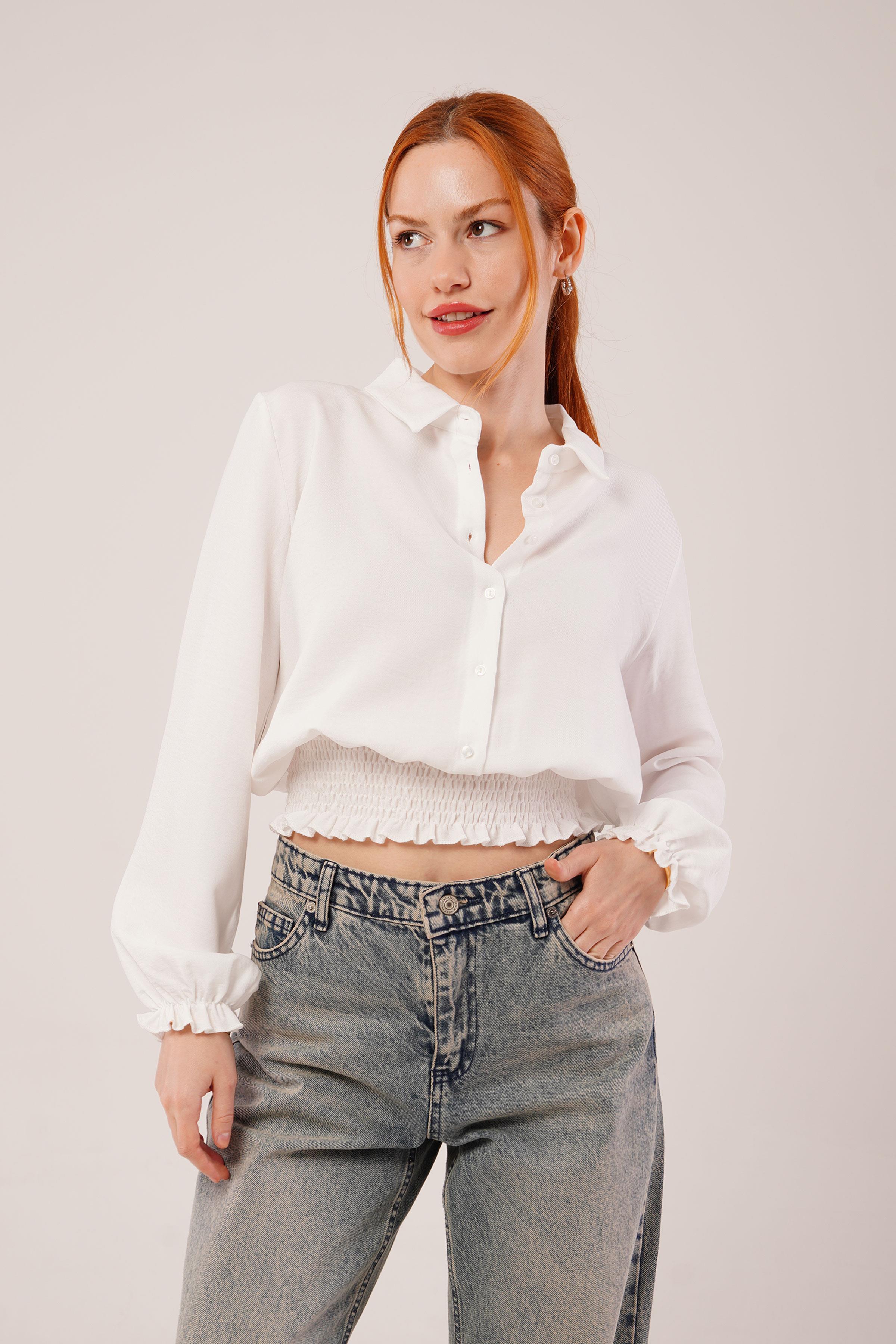 Bel Ve Bilek Lastikli Beyaz Bluz