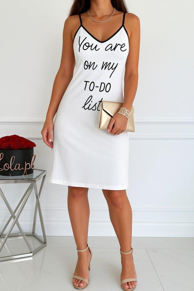 Kadın Kolsuz Askılı Sırt çapraz Detay To Do List Baskı Süprem Gecelik Elbise