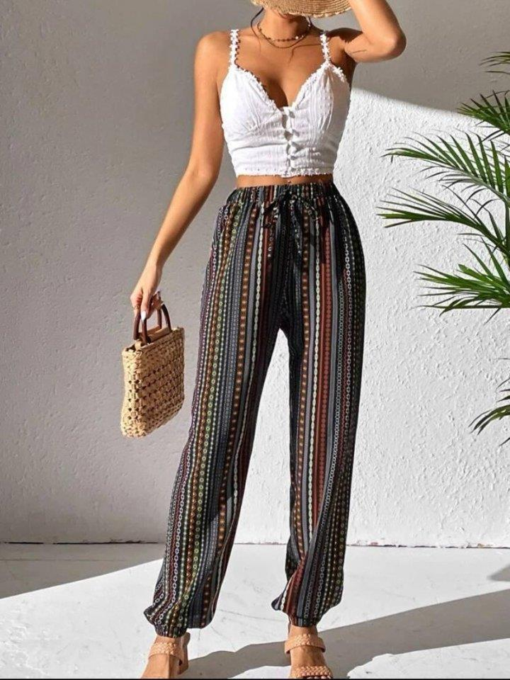 Kadın Moss Krep Kumaş Bel Ve Bilekler Lastikli Rahat Kesim Pantolon