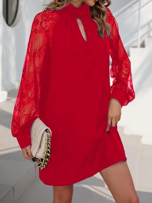 Kadın Uzun Kollu Damla Detaylı Sandy Mini Elbise